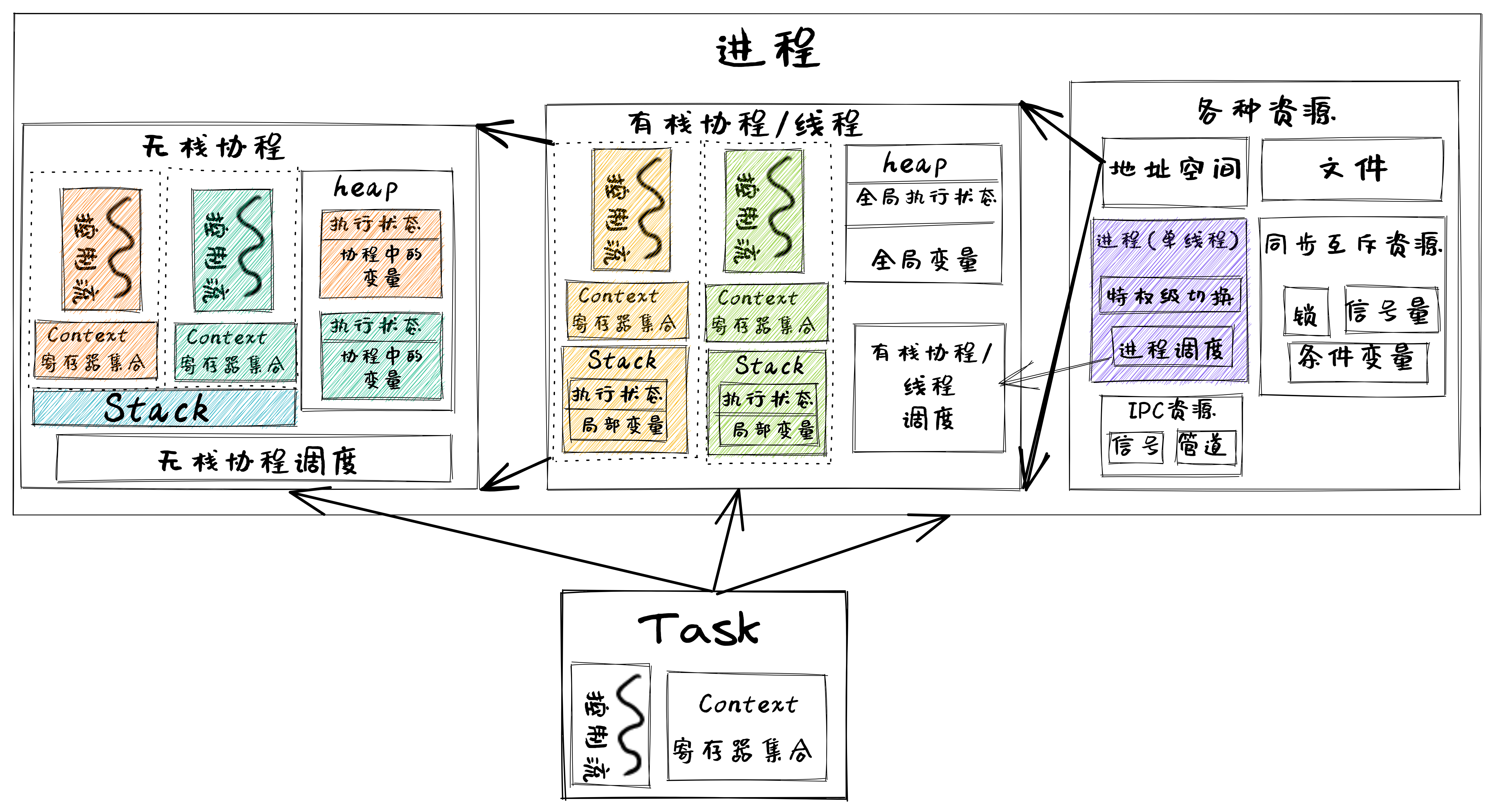 早期的计算机硬件没有内存隔离保护机制,多个程序以任务(task)的形式进行执行,但各个任务之间是依次执行(批处理方式)或相互独立执行,基本没有数据共享的情况,所以还没有形成线程的概念。当多个任务需要共享数据和同步行为时,就需要扩展任务针对共享数据的执行特征,并建立相应的同步互斥机制。